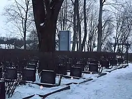 Sur le côté oriental du mur de pierre se trouvent deux tombeaux, celui du coin nord date du début du XIXe siècle et appartenait à la famille Baer. L'autre tombeau date des années 1780.