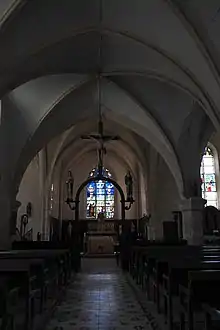 L'intérieur de l'église est composé d'une nef de trois travées, d'un transept et d'un chœur à chevet plat. La nef date du XIIe siècle, le transept, le chœur et les chapelles latérales ont été élevés aux XVe et XVIe siècles.