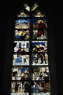 Le vitrail du côté sud du chœur est composé de plusieurs verrières. Sur la partie haute est représentée la scène du Noli me tangere, l'apparition du Christ ressuscité à Marie Madeleine qui le prend pour un jardinier.