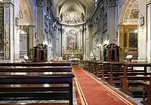L'intérieur est à nef unique avec trois chapelles latérales de chaque côté. Le maître-autel est surplombé d'un tableau de Francesco Pascucci représentant le martyre de saint Vincent et de saint Anastase.