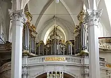 L'orgue fut installé en 1763. Bien que ce ne soit pas absolument certain l'instrument est attribué au facteur d'orgues Johann Friedrich Ferstl [7]. Le buffet d'orgue est de style Rococo. Le registre et le mécanisme d'action sont mécaniques. En 1804, l'orgue fut réparé ou redessiné. Pendant la Première Guerre mondiale, les tuyaux en étain ont dû être livrés à des fins d'armement et ont ensuite été remplacés par un matériau de qualité inférieure (zinc).