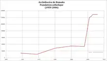 La population catholique du Mali est en constante augmentation. Elle a été multipliée par presque 10 entre 1959 et 2006, en passant de 13612 à 128791 baptisés. Cependant le nombre de prêtres n'a pas encore suivi l'augmentation, et aujourd'hui on compte près de 3000 fidèles pour un seul prêtre[réf. nécessaire].