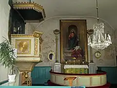 Le retable peint en 1876 par Bernhard Reinhold La femme pécheresse devant le Christ. La chaire est conçue par Carl Ludvig Engel.