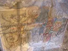 Les restes de l'ancienne église sont visibles près de l'abside. Une fresque représentant l'arrivée de Jésus à Jérusalem est située derrière le maître-autel. Les plafonds et les murs sont recouverts de décors floraux. Des fresques murales dépeignent le peuple de Jérusalem se préparant pour la procession.