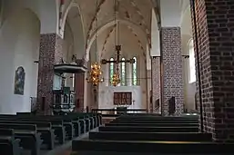 Les peintures murales du XVe siècle sont visibles dans les voûtes. Dans les années 1650, les peintures des voûtes ont été recouvertes de chaux. À la fin du XIXe siècle, les murs latéraux ont été plâtrés[3].