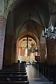 Quatre paires de piliers divisent la nef en trois vaisseaux. Les voûtes sont de simples voûtes croisées et présentent des peintures primitives. L'intérieur de la nef est moderne, à l'exception du sarcophage de saint Henri restauré à la fin des années 1960 et de la chaire offerte en 1640[3],[2].