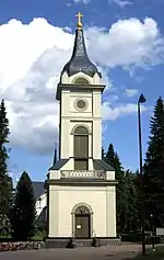 Le clocher séparé, construit en 1843 par Jaakko Kuorikoski, fut conçu par Carl Ludvig Engel pour l'ancienne église[3]. Les cloches sont de 1830 et de 1845.