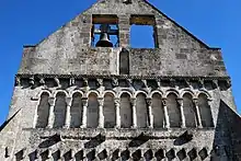 La façade occidentale a été remodelée, probablement au XVIe siècle lors de la construction du clocher-mur. Des éléments de la façade originelle ont été réutilisés pour l'ornementation de la nouvelle façade.