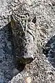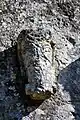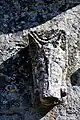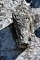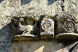 Il est vraisemblable que les têtes de chevaux ici formaient une archivolte de l'ancien portail et lors de la restauration au XIVe siècle on les a utilisés à des fins ornementales.