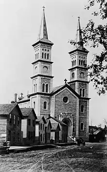 La paroisse a été fondée en 1856 par Mgr Joseph Crétin, évêque d'origine française, et son premier curé, le père Keller. Les émigrants allemands commençaient à arriver à cette époque, et l'unique paroisse de Saint Paul desservait surtout des colons irlandais ou francophones. Les messes étaient en latin et les sermons en anglais ou en français. La première église était un simple édifice de pierres avec un petit clocher de bois. Les bénédictins de l'abbaye de Collegeville desservent la paroisse à partir de 1858, alors que les paroissiens germanophones commencent à affluer. Le besoin d'une église plus grande se fait sentir, aussi Mgr John Ireland, évêque de l'époque, décide-t-il de la construction d'une nouvelle église pour servir à cette nouvelle population d'émigrants.
