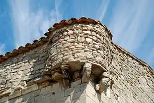 Au XIVe siècle, l'église est surélevée et fortifiée. Des tours de défense encorbellées sont ancrées aux angles sud-est et nord-ouest et sont reliées par un chemin de ronde situé juste au dessus de la corniche.