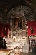 Le retable du maître-autel date de 1624[3]. Les incrustations de marbre polychrome, les colonnes imposantes et les trois statues nous indiquent la grande qualité et le coût important de l’œuvre[3].