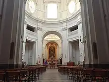 L'intérieur de l'église est à plan central, le milieu recouvert d'une coupole appuyée sur un tambour et surmontée d'une lanterne. Il comprend aussi un avant-corps et un chœur avec quatre tribunes de chœur en haut. L'église abrite de nombreuses œuvres d'art, dont des toiles de Francesco de Mura (Saint Vincent de Paul en gloire, dans la première chapelle de droite) et de Giovanni Sarnelli (La Conversion de saint Paul, de 1787). Les tribunes du chœurs sont en racine de noyer et datent du XVIIIe siècle et le lavabo (également du XVIIIe siècle) en marbre de la sacristie, remarquable, est des mains du Napolitain Pascale Cartalano.