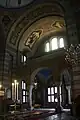 L'intérieur est richement décorée selon les canons byzantins, orné entièrement par de peintures à l'huile imitant la mosaïque. Dans le presbytère se trouvent trois autels. La grande lampe d'argent qui pend à l'entrée est un cadeau du tsar Paul Ier.