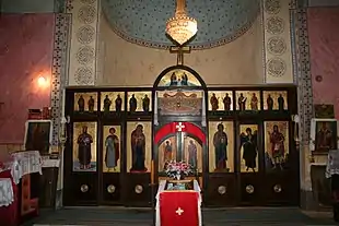 L'église s'inscrit dans un plan tréflé, avec une abside spacieuse et un espace central large et haut. Le toit est recouvert de zinc mais son inclinaison suggère qu'il était autrefois constitué de bardeaux[2]. Au-dessus du narthex se trouve une galerie en bois à laquelle on accède par un escalier situé contre le mur nord[2]. Le chœur est séparé de la nef par une iconostase en bois de construction récente et l'on ignore l'apparence de l'iconostase originelle[2].