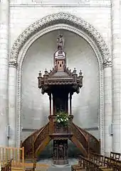 La chaire à prêcher se trouve dans une des chapelles. Cette pièce d'ébénisterie du XIXe siècle possède de nombreuses sculptures, notamment saint Georges terrassant le démon sur l'abat-son, l'Annonciation et deux évangélistes sur la cuve et saint Marc au niveau de son pied.