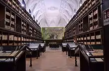 Après cela, trois cloîtres monumentaux se développent successivement, artistiquement parmi les plus importants de la ville et qui abritent dans environ 300 salles[12] les Archives d'État de Naples [13], la plus grande et la plus riche collection documentaire du sud de l'Italie, avec des volumes, pamphlets, manuscrits, actes officiels, parchemins et documents concernant la ville de Naples du Xe siècle à l'époque moderne.