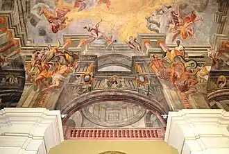 Les peintures au plafond créent l'illusion que l'église n'a ni voûte ni toit, et que l'on regarde directement le ciel.