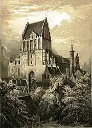 - 1945 Lors de l’assaut de l’Armée rouge sur Gdansk, l’église est bombardée puis incendiée à nouveau. À cette époque, les charpentes du chœur, du bas-côté sud et d’une partie de la nef centrale se sont effondrées. La plupart des voûtes ont été arrachées.