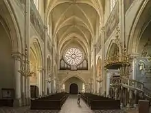 Vue à travers la nef à l'arrière ; Buffet d'orgue