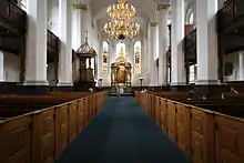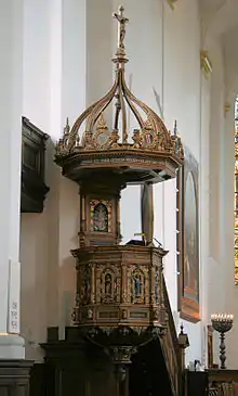 L'incendie de 1728 nécessite des travaux, jusqu'en 1734, effectué dans le goût baroque, avec son autel monumental. Elle est à nouveau restaurée par Herman Storck (en) en 1878-1880.
