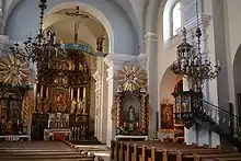 L'église, dédiée à l'Assomption, et le couvent de l'ordre des frères prêcheurs ont été fondés en 1676 par la famille Tarnowski qui offre en plus aux dominicains le village de Radowaz. La première église est en bois. Les dominicains la reconstruisent en pierre en 1693. Un incendie détruit le la majeure partie construite en bois du couvent. De nouveaux travaux commencent pour reconstruire totalement le couvent et l'église en style baroque, d'après les plans de Jan Michał Link. Ils sont consacrés en par Mgr Biegański, évêque du lieu. le maître-autel de l'église, avec son retable, est un exemple remarquable du baroque polonais.