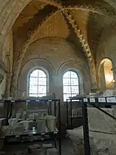 - « Salle au-dessus du narthex », notice no APMH045349, sur la plateforme ouverte du patrimoine, base Mémoire, ministère français de la Culture, « Premier étage du narthex, pilier », notice no APMH046046, sur la plateforme ouverte du patrimoine, base Mémoire, ministère français de la Culture ; voir aussi chez Alfred-Nicolas Normand, « Dépôt lapidaire : chapiteaux et têtes », notice no APNRM01237, sur la plateforme ouverte du patrimoine, base Mémoire, ministère français de la Culture.