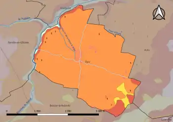 Par ailleurs, le sol du territoire communal peut faire l'objet de mouvements de terrain liés à la sécheresse. Le phénomène de retrait-gonflement des argiles est la conséquence d'un changement d'humidité des sols argileux. Les argiles sont capables de fixer l'eau disponible mais aussi de la perdre en se rétractant en cas de sécheresse[32]. Ce phénomène peut provoquer des dégâts très importants sur les constructions (fissures, déformations des ouvertures) pouvant rendre inhabitables certains locaux. Celui-ci a particulièrement affecté le Loiret après la canicule de l'été 2003. Une grande partie du territoire de la commune est soumise à un aléa « moyen » face à ce risque, selon l'échelle définie par le Bureau de recherches géologiques et minières (BRGM)[33].