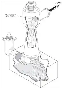 Un éjecteur est un assemblage mécanique exploitant la dépression créée par l'effet Venturi et permettant à l'aide d'un premier fluide pressurisé, de comprimer un second fluide en les mélangeant ; sans aucune pièces mobiles transmettant d'énergie aux fluides. Il peut être utilisé dans de nombreux domaines, par exemple l'extraction des fumées, l'obtention d'un vide (certains aspirateurs par exemple), ou encore sur certaines machines de climatisation[1] et bien d'autres domaines. Il fonctionne à partir du principe de l'effet venturi. Un fluide est injecté à grande vitesse à l'entrée du venturi, généralement de la vapeur d'eau, de l'air comprimé, ou encore un fluide frigorigène, mais il existe aussi des hydro-éjecteurs[2]. L'aspiration se produit généralement au niveau de l'étranglement, ou bien un peu après.