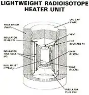 Les spécifications typiques[1] retenues par la NASA correspondent à des cylindres blindés dans une coque en alliage platine-rhodium pesant environ 40 g enveloppe comprise, pour une hauteur de 3,2 cm et un diamètre de 2,6 cm. Chaque élément contient une pastille de 2,7 g de 238PuO2.