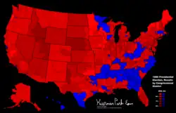 Elle oppose le président sortant Jimmy Carter à l'ancien gouverneur de Californie Ronald Reagan pour le Parti républicain. Le représentant de l'Illinois John Anderson, membre du Parti républicain mais défait battu lors des primaires du parti, se présente en candidat tiers parti sans étiquette partisane. De même, le candidat du Parti libertarien Ed Clark (en) parvient bouleverser quelque peu le jeu politique. Cette élection marque un tournant dans la vie politique américaine pour plusieurs raisons. D'abord, elle marque le reflux d'anciens électeurs du Sud, notamment du Sud profond, vers le Parti républicain, qui l'emporta dans la quasi-totalité des anciens États confédérés, hormis en Géorgie et en Virginie-Occidentale[alpha 2]. Le parti, qui avait progressivement viré à droite à partir des années 1960 par sa prise en main par les conservateurs, achevait sa « révolution conservatrice »[5]. Cette élection voit également une partie des électeurs modérés du Parti démocrate se reporter sur le ticket du Parti républicain, marquant l'émergence du phénomène des Reagan Democrats. De plus, le parti parvint à reprendre la majorité au Sénat pour la première fois depuis 1952[6]. C'était également la première fois depuis 1940 qu'un président sortant était autant mis en ballottage pour la nomination par son parti[alpha 3].