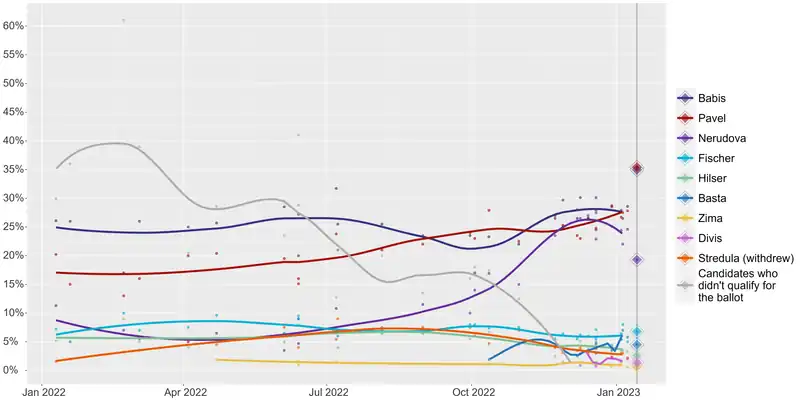 Le premier tour aboutit à un ballotage entre l'ancien président du gouvernement Andrej Babiš et Petr Pavel, ancien chef de l'État-Major général tchèque et candidat indépendant soutenu par la coalition Ensemble, principale composante du gouvernement Fiala.