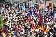Mais si l’Organisation des Nations unies a mis en place des institutions basées sur des modèles occidentaux, elle n’a pas voulu tenir compte des réalités du terrain, notamment le fait que par son histoire le royaume khmer a souvent eu à composer avec des règles imposées par l’étranger voire à les contourner[12]. De fait, suivant un scénario qui semble bien huilé, les scrutins pour le choix des membres de l’Assemblée nationale se déroulent en deux temps. Tout d’abord, des élections sont organisées qui permettent de choisir les futurs députés ; ce premier volet montre aux pays donateurs que les institutions qu’ils ont contribué à mettre en place fonctionnent toujours, mais sitôt les résultats connus, les partis minoritaires, et ce quelle que soit leur couleur politique, rejettent le suffrage en invoquant des irrégularités, refusent toute participation dans les instances nouvellement élues et tentent de bloquer les institutions. S’ensuivent des tractations dont la longueur dépend du poids de chacun, jusqu’à ce que la crise trouve un dénouement, généralement par une distribution de postes à responsabilité[13].