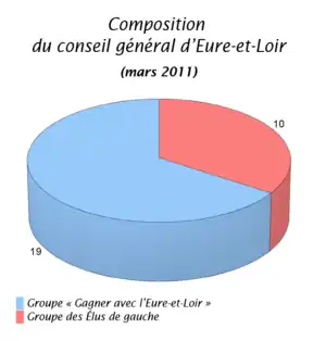 | Union pour un mouvement populaire | UMP | 8 | Gagner avec l'Eure-et-Loir (GAEL) |