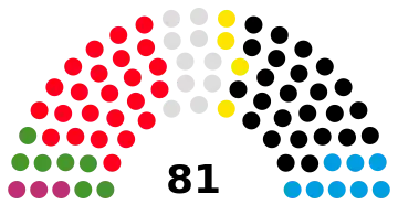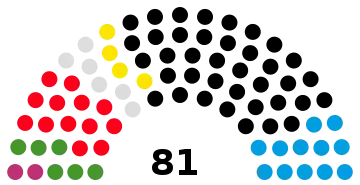 | Parti | Voix | % | +/- | Sièges | +/- | |