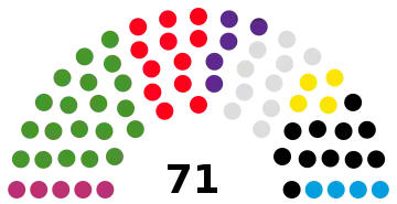 | Parti | Voix | % | +/- | Sièges | +/- | |
