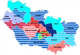 - Cantons sans binôme La Somme en commun : Doullens, Moreuil et Poix-de-Picardie.