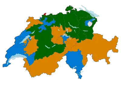 - dans certaines communes des cantons d'Appenzell Rhodes-Extérieures (4/20) (Rehetobel, Speicher, Trogen, Wald)[52], et des Grisons[53] (21/108) (Albula/Alvra, Arosa, Bever, Bonaduz, Bregaglia, Casti-Wergenstein, Cazis, Conters im Prättigau, Domleschg, Donat, Fideris, Jenaz, Luzein, Masein, Safiental, Scuol, Sils im Domleschg, Sumvitg, Surses, Tschappina, Vals)[52]. (État au )