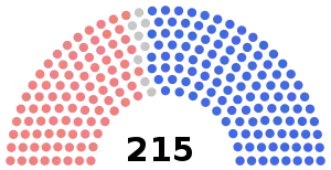 | Total sièges | 6 | 4 | 5 | 92 | 65 | 16 | 21 | 6 | 215 | ||