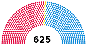 | 625 sièges de la Chambre des communes (Majorité absolue : 313 sièges) | ||||||||||||||