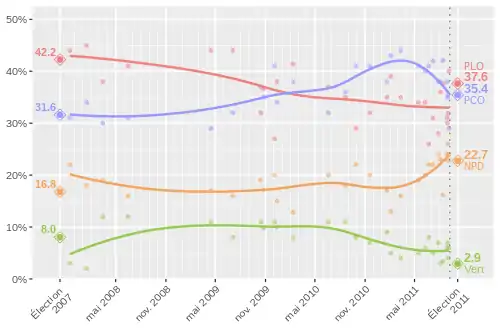 | Élections de 2007 | 42,25 | 31,62 | 16,77 | 8,02 | 1,34 | ||||||