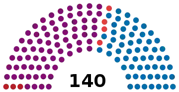 | 140 députés de l'Assemblée (Majorité absolue : 71 députés) | ||||||||||||||