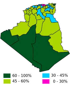 | Front national algérien (FNA) | 198 544 | 2,13 % | 9 (dont 3 femmes) | 4 | ||