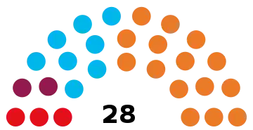 | 28 sièges du Conseil général (majorité absolue : 15 sièges) | ||||||||||||||