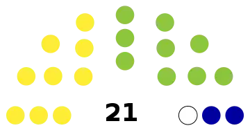 | 21 sièges des États d'Aruba (majorité absolue : 11 sièges) | ||||||||||||||