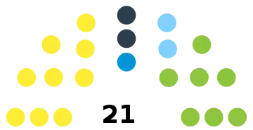 | 21 sièges des États d'Aruba (majorité absolue : 11 sièges) | ||||||||||||||