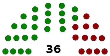 | 36 sièges de l'Assemblée (Majorité absolue : 19 sièges) | ||||||||||||||