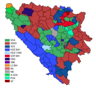 Organisé dans le cadre des élections générales, le scrutin voit la victoire de l'Alliance des sociaux-démocrates indépendants serbe en république serbe de Bosnie et celle du Parti d'action démocratique bosniaque et d'une alliance menée par l'Union démocratique croate dans la fédération de Bosnie-et-Herzégovine.