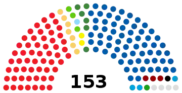 | 153 sièges du Parlement (Majorité absolue : 77 sièges) | ||||||||||||||