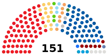 | 151 sièges du Parlement (Majorité absolue : 76 sièges) | ||||||||||||||